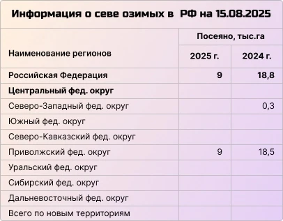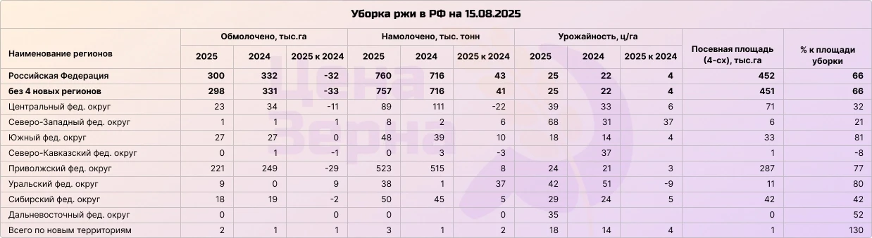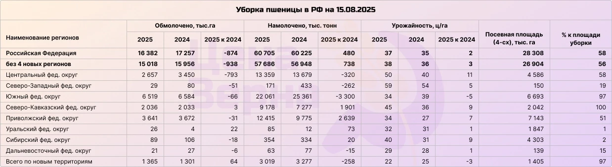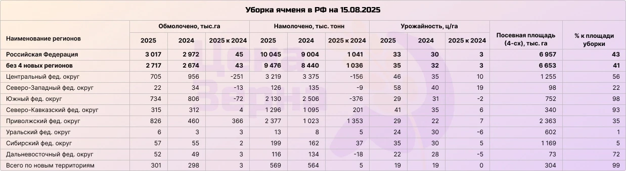 Давайте посмотрим на актуальные данные по уборочной 2025 по зерновым культурам на 18 августа.