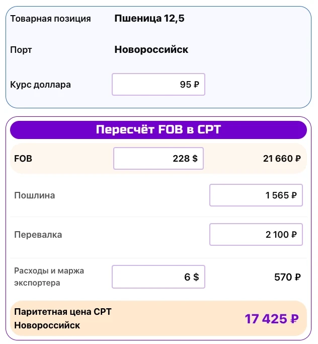 При таких ценах расчетная маржа экспортера составляет 3 доллара: