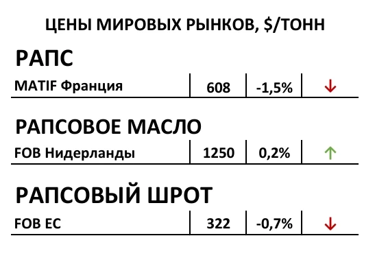 Рапс (Биржа EuroNext) - 608 $/МТ (+2,5%)