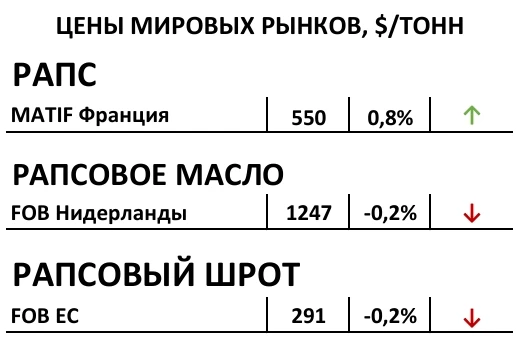 Ценовой спред между августовским и февральским контрактами на Euronext вырос до 10 $/Т. Фьючерсы выросли из-за опасений, что урожай рапса в ЕС 25/26 может быть ниже из-за негативных погодных условий.