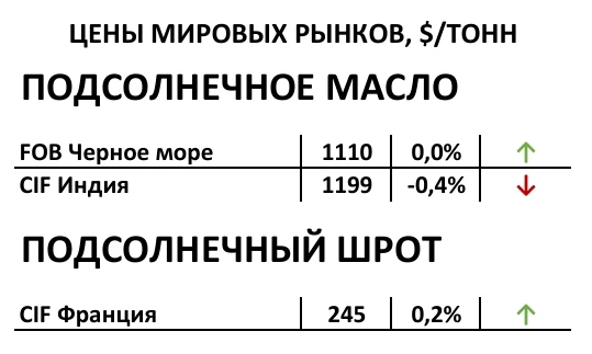 Индикативные котировки подсолнечного масла для Турции остались на уровне 1 158 $/Т (CIF Мармара), фрахт вырос до 48 $/Т, а цена по экспортному паритету — 1 083 $/Т (FOB Малая вода). Для Индии цены выросли до 1 220 дол/МТ (CIF Ченнай), а при фрахте 58 $/Т — цена FOB составляет 1 136 $/Т. На внутреннем рынке цены стабилизировались в диапазоне 87 000–89 000 руб./Т с НДС CPT, несмотря на предложения ниже — около 87 000 руб./Т. Поддержку рынку оказали новости об снижении импортных пошлин в Индии, что подняло FOB-цены, но курсовой фактор негативно влияет на ВЭД.