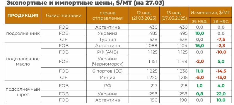 После снижения закупочных цен со стороны маслоперерабатывающих заводов наблюдается откат, так как СХТП не готовы снижать цены на фоне уменьшения экспортной пошлины на масло и шрот. В апреле пошлина на подсолнечное масло снизится почти вдвое, что может увеличить ликвидность экспортного направления и привести к повышению закупочных цен. Наиболее заметно это в ЦФО, в то время как в ПФО и ЮФО ситуация стабильнее.