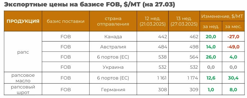 Служба мониторинга урожая ЕС (MARS) прогнозирует, что в 2025 году урожайность рапса в странах блока составит 3,2 т/га, что на 8,5% выше уровня 2024 года. В прошлом году ЕС столкнулся с потерями из-за неурожая рапса, что привело к активизации импорта маслосемян. Однако ожидается восстановление производства в ключевых странах, таких как Франция, Германия и Польша. В начале весны озимые в показывают хорошее состояние, и число пострадавших от неблагоприятных погодных условий районов сократилось.