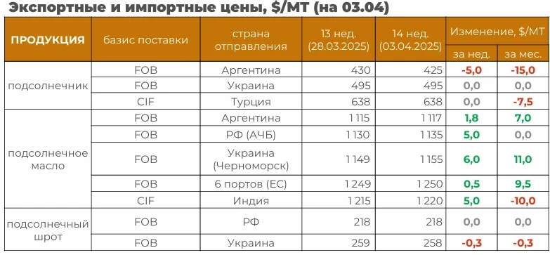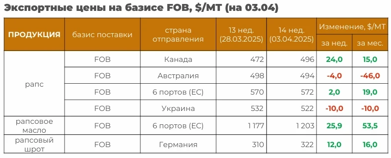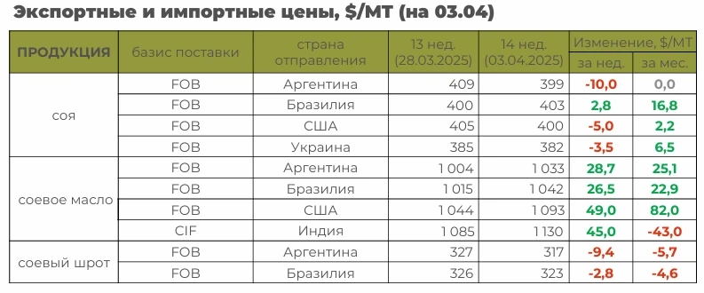Основные события рынка масличных с 31 марта по 6 апреля