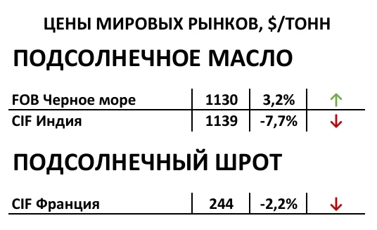 В сегменте подсолнечного шрота цены остались стабильными после небольшого повышения спроса в портах на фоне отмены пошлины в августе. Мораторий почти не повлиял на внутренний рынок: заводы продолжают активно реализовывать продукцию животноводам. Ближайшие 1,5 месяца считаются оптимальным временем для продаж, поскольку при благоприятной погоде и завершении ремонтных работ в сентябре ожидается снижение цен на октябрьских тендерах.