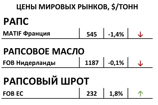 Фьючерсы на рапс на Euronext оставались стабильными, ожидая сигналов с полевых работ в ЕС. Постепенное увеличение предложения и негативные настроения на рынке нефти сдерживают рост цен. В этом году основной прирост производства ожидается в Румынии