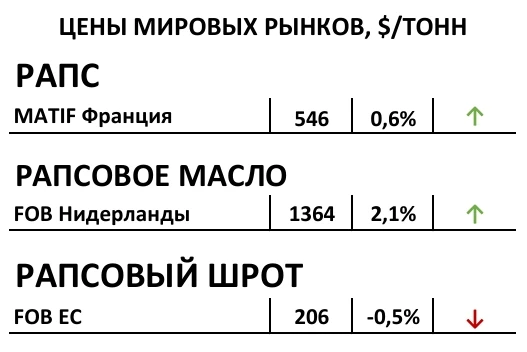Рапс (Биржа EuroNext) - 541 $/Т (+0,9%)