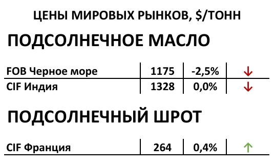 Маржинальность переработки подсолнечника в РФ существенно снизилась, особенно на Юге и в Центре. В результате экспортные котировки масла на FOB РФ снизятся - предложение из России будет низким, а мировой рынок останется дефицитным из-за задержек новых поставками из Аргентины. Цены российских экспортеров на сырое масло остаются очень низкими, примерно на 5% ниже уровня экспортного паритета. В ноябре 2025 года экспорт составил около 450 тыс.тонн, что меньше, чем более 550 тыс.тонн в ноябре 2024 года.