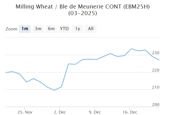 Алжир закупил крупную партию твердой пшеницы. 18-ого декабря алжирская государственная компания OAIC провела тендер по закупке не менее 50 тыс. т твердой пшеницы. Закуплено, по разным оценкам, 350-500 тыс. т пшеницы. Цена составила около $340-352 C&F в зависимости от класса судна. Предполагают, что победителем тендера стал канадский дурум Canada Western Amber Durum (CWAD). Возможно, часть пшеницы закуплена в США и Австралии. По условиям тендера отгрузка состоится в марте-апреле 2025 г.