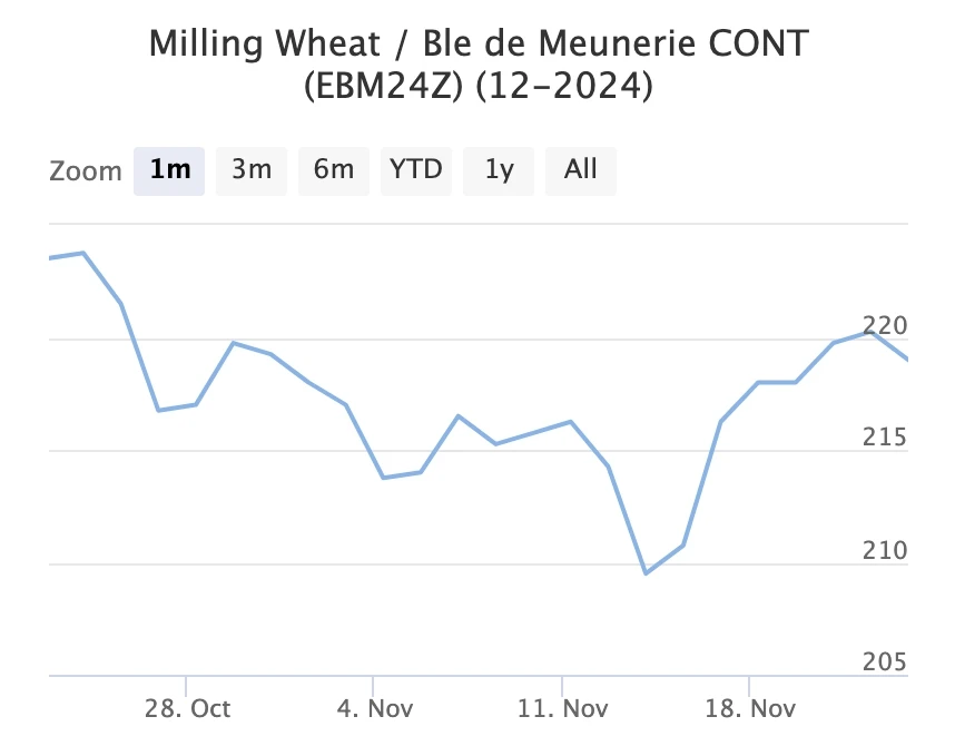 Увеличение экспортных цен на европейском рынке обусловлено геополитическим фактором и растущими фьючерсными котировками на бирже MATIF. Также отмечается рост интереса к французской пшенице со стороны марокканских импортеров.