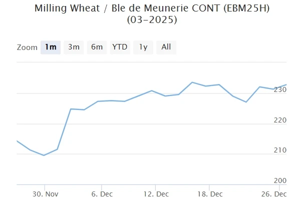 Matif MW 227 -> 232,75 (+2,5%)