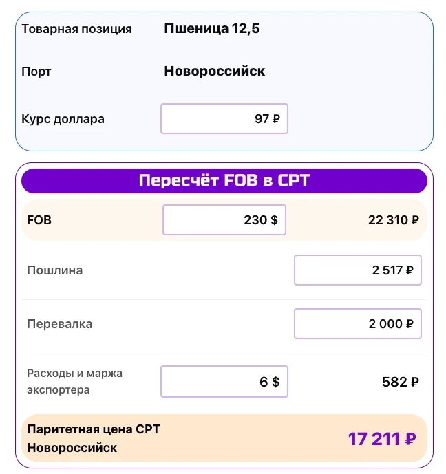 Вслед за ростом цен на экспортном рынке продложает расти биржевой индекс пшеницы, используемый для расчета пошлины. К концу недели индекс составил $223,6, а пошлина прибавила 244₽ и со среды будет на уровне 2 517₽/тонну.