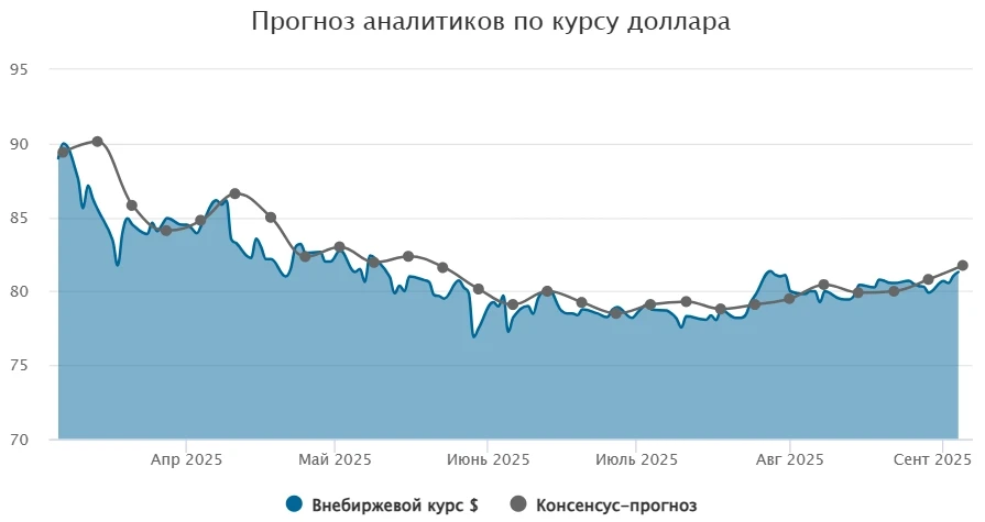 Минувшая неделя завершилась ослаблением рубля к мировым валютам. 5 сентября курс доллара превысил 81,25 руб., прибавив за неделю 1,38 руб. Официальный курс вырос до 81,56 руб./дол. Ослаблению рубля способствуют снижение предложения валюты от экспортеров и рост спроса со стороны импортеров и населения. Доллар закрепился выше 80 руб. и продолжает расти, ожидается курс в диапазоне 81–83 руб./дол. Спрос населения на валюту вдвое ниже прошлогоднего, но компании значительно увеличили покупки — с 20 млрд долл. в июне до 33,4 млрд долл. в августе, что свидетельствует об оживлении импорта.