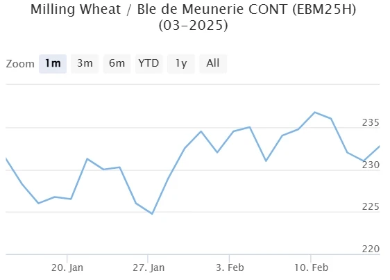 Matif MW 234,75 -> 232,75 (-0,8%)