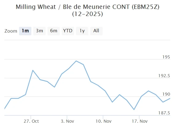 Matif MW 188,25 -> 189,75 (+0,7%)