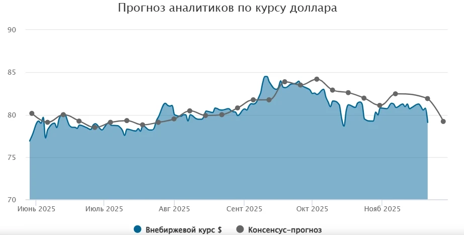 Минувшая неделя завершилась укреплением рубля: курс доллара по внебиржевым сделкам опустился до 79,2 руб. (-1,65 руб.), а официальный — до 79,02 руб. Влияние оказали новости о подготовке американского плана урегулирования конфликта, а также введение санкций ЕС и США против российской нефти, что может временно ослабить рубль из-за снижения внешних доходов и повышенных дисконтов. Риск срыва переговоров остается высоким, и негативные новости могут повлиять на динамику курса.