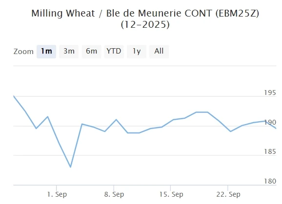 Matif MW 190,75 -> 189,5 (-0,7%)
