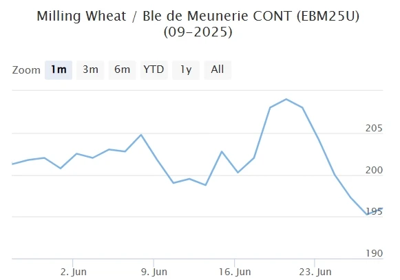 Matif MW 208,0 -> 196,0 (-6,1%)