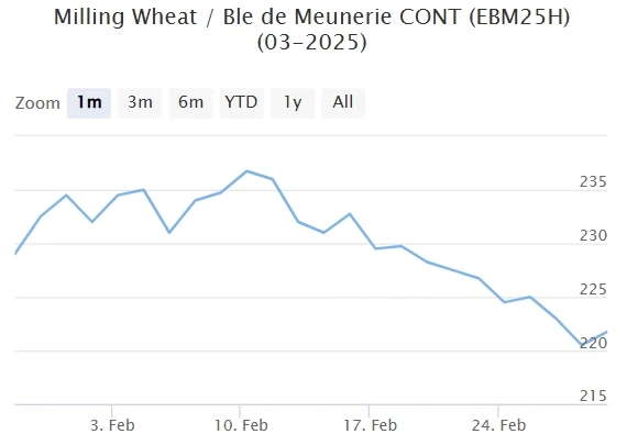 Matif MW 226,75 -> 221,75 (-2,3%)