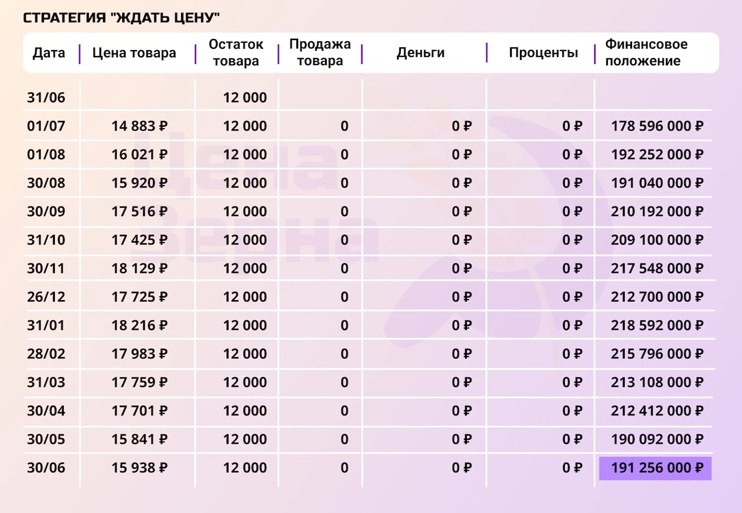 2) 🗓 Ждать цены. Продавать на пике в январе-мае, под конец сезона. Будем оценивать эту стратегию по актуальной цене на текущий момент.