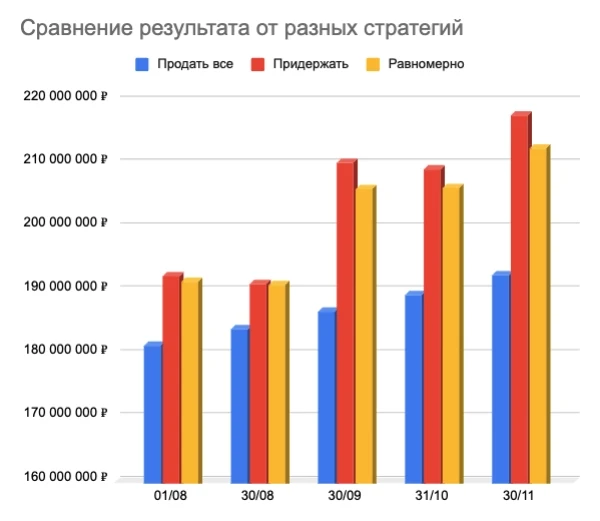 Продать или придержать?Давайте посмотрим на сравнение стратегий на начало декабря