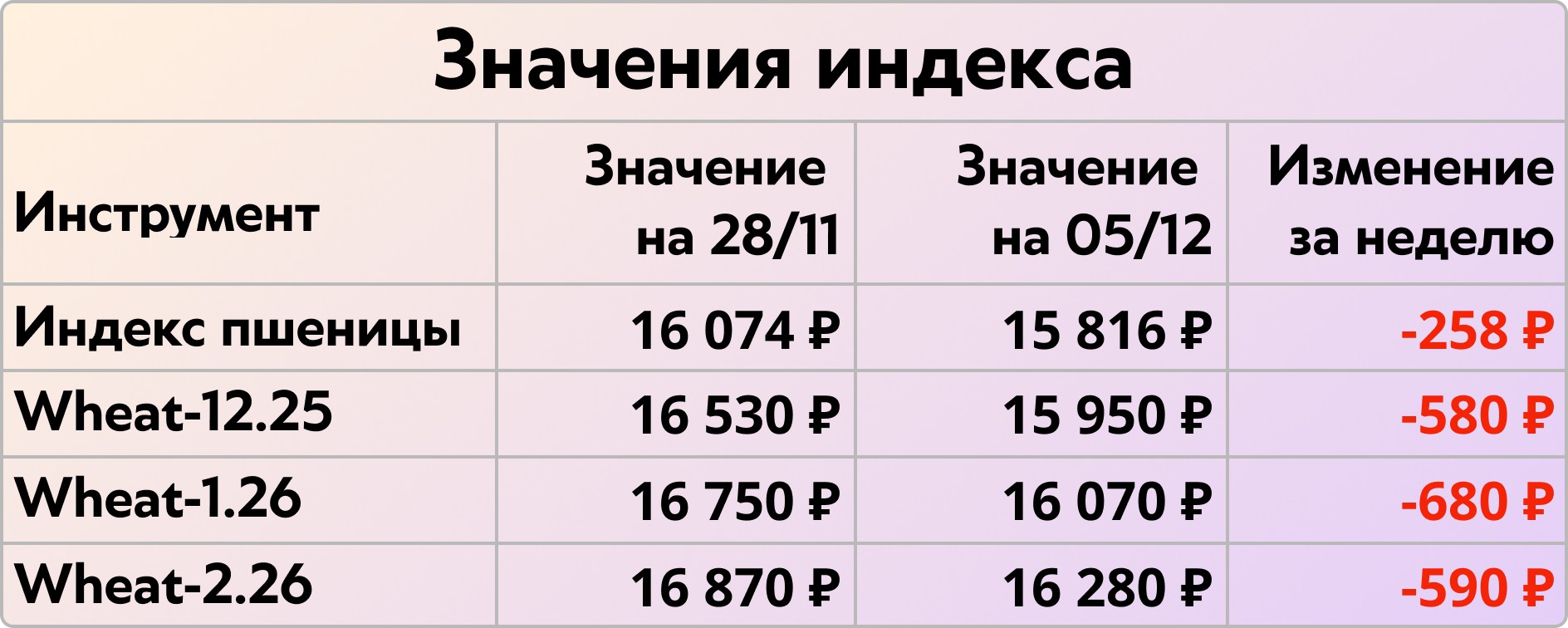 Стремительное падение, еженедельный мониторинг фьючерсов на пшеницу